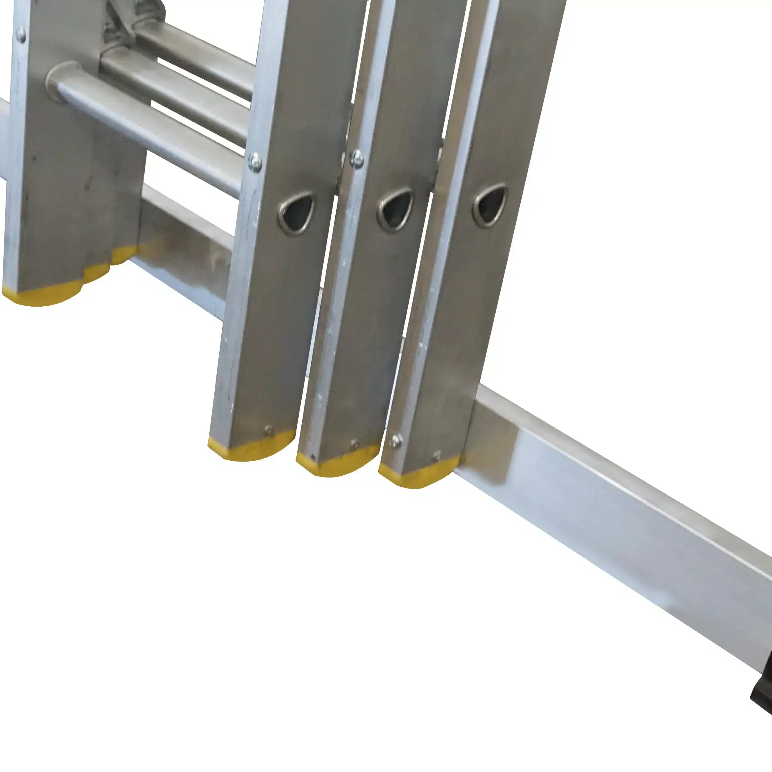 Safety is paramount when working at height. To provide total peace of mind, this extension ladder holds full EN131-2 Professional certification. To maximise stability on uneven or challenging terrain, it is equipped with a high-quality stabiliser bar featuring a larger footprint specifically engineered to minimise sideways slips. Additionally, operators will benefit from the strengthened D-shaped rungs, which ensure a comfortable grip and secure footing during ascent and descent.