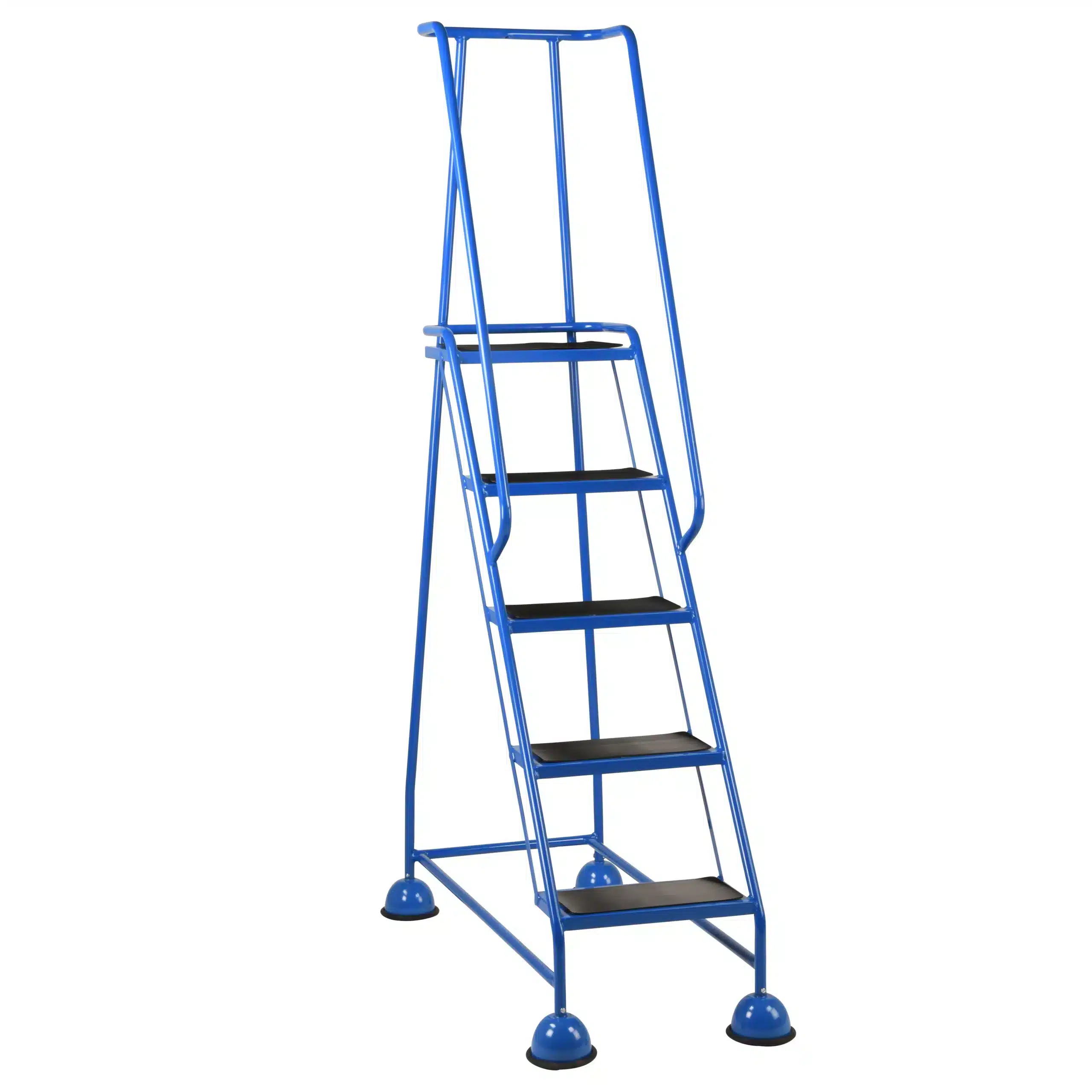 What safety standards do these meet? Our BSI Redhill range is manufactured to meet EN131-7 standards for mobile leaning ladders and steps. They feature high handrails and kickboards to ensure full compliance with UK Health & Safety regulations.